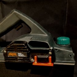 Elhyvel för träbearbetning. Verktyget har ett handtag och en justeringsratt.