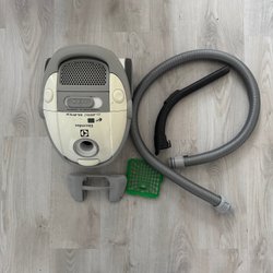 Electrolux dammsugare med diverse tillbehör. Modellen är Silent Performer Green. Ingår en ny dammsugarpåse.