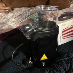 Popcornmaskin från Rubicson. Modell: 49020. Effekt: 1200W. Tillverkad i Kina. Inget fett behövs, popcornen görs med luft.