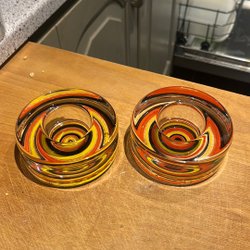 Höjd Orrefors: 4,5 cm. Diameter: 7 cm. Vikt/st : 378 , 384 gram.