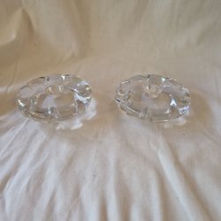 Fina ljusstakar i kristall. De lite runda är från Orrefors och signerade. De 2 andra vet jag inget om men alla 4 är riktigt fina.