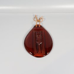 Väggprydnad i rött glas med ingjuten figur.