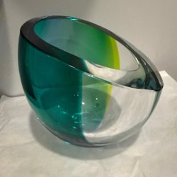 Material: Tungt, klart konstglas med organiska former.