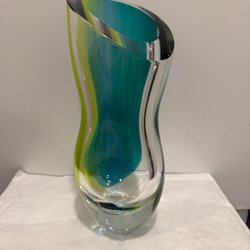 Denna vas är en Kosta Boda konstglasvas designad och signerad av Göran Wärff.