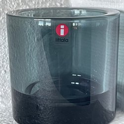 Ljuslyktan designades av Alvar Aalto och serien heter Savoy. Den mäter 5,5 cm hög och diametern är ca 10,5 cm. Absolut felfritt skick med tillhörande originalkartong.