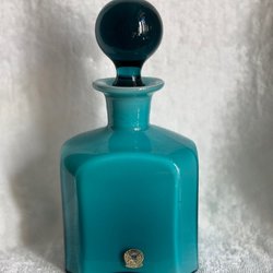 Karaff (okänt ursprung) 28 cm hög och tre flaskor från Reijmyre 13 cm höga.