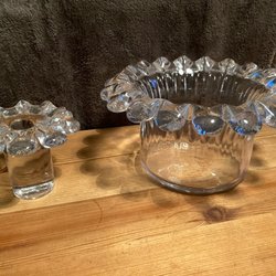 En Pukeberg Manet ljusstake i glas designad av Uno Westerberg. Diameter ca 18 cm. Fint begagnat skick.