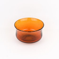 Blå glasskål på fot med invändig dekor med bubblor