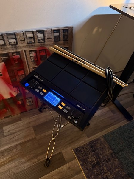 Millenium NonaPad är en trummaskin med nio anslagskänsliga pads. Den har en tydlig display och kontroller för att justera ljud och effekter. NonaPad är utrustad med anslutningar för externa triggers och pedaler, vilket gör den mångsidig för olika musikaliska sammanhang. Den kompakta designen gör den enkel att transportera och använda i olika miljöer.