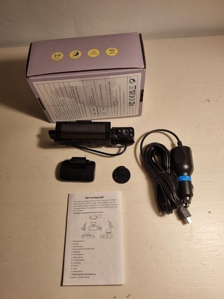 HD dash cam med tillbehör. Se bilder för detaljer.