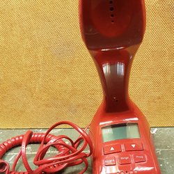 Kobra 20:20mobile telefon. En röd telefon med sladd.