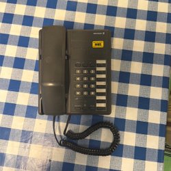 Vit fast telefon med knapptryckning.