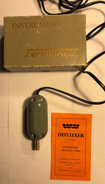 Vintage Ferrograph Instruments Defluxer med bruksanvisning från Wright & Weaire Ltd. Varit i min ägo sedan ny. Fullt fungerande. En kul pryl att ha om man jobbar med vintage bandspelare, både R2R och kassettdäck.