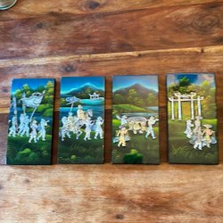 Färgglad vävd väska med ett unikt mönster i rött, blått, grönt, gult och lila. Väskan har ett axelband och dekorativa tofsar nedtill. Insidan är fodrad med ett svart tyg. Cirka 44x38 cm.