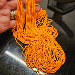Två stickade halsdukar i färgerna mörkgul (senap) och starkorange. Perfekt för att hålla värmen under kyliga dagar. Knappt använd, I jättebra skick. Djurfri och rökfri huset.