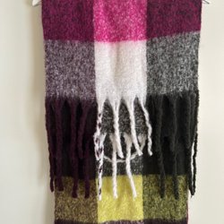Den är en enfärgad blå halsduk med fransar.
