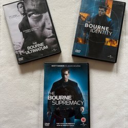 Komplett samling av Bourne filmerna på DVD. Inkluderar The Bourne Identity, The Bourne Supremacy och The Bourne Ultimatum.