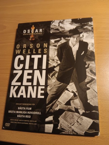 DVD-utgåva av Orson Welles klassiska film Citizen Kane. Oscar-nominerad för bästa film, bästa manliga huvudroll och bästa regi. Svensk text. Dvd,n har några ytliga repor, men inget som påverkar spelbarheten. Köpare betalar frakten=47kr