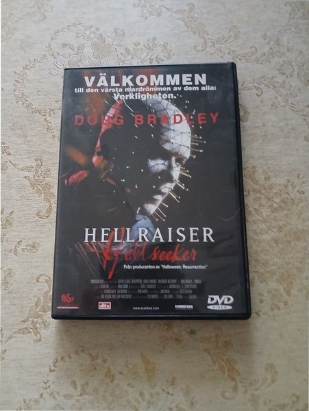 DVD-film: Hellraiser: Hellseeker. Medverkande: Doug Bradley, Ashley Laurence, Anthony Arler, Esa Moder, Troy Kaisen. Filmen är från producenten av Halloween: Resurrection.