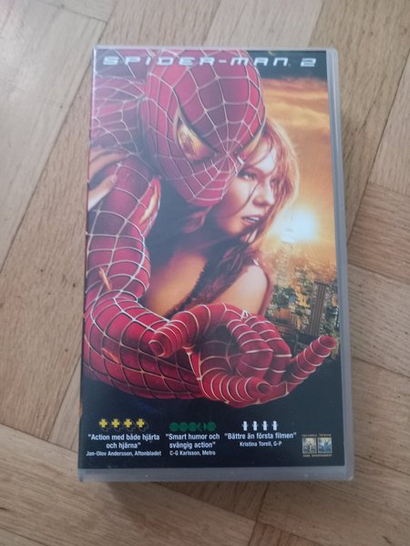 Vhs-film: Spider-Man 2. Filmen har fått recensioner som "Action med både hjärta och hjärna" (Jan-Olov Andersson, Aftonbladet), "Smart humor och svängig action" (C-G Karlsson, Metro) och "Bättre än första filmen" (Kristina Torell, G-P).