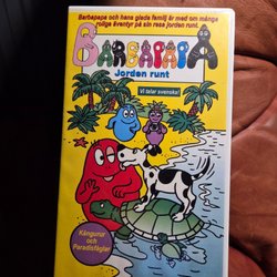 VHS-kassett med Barbapapa - Jorden runt. Innehåller avsnittet "Pingviner och Algar". Svenskt tal.