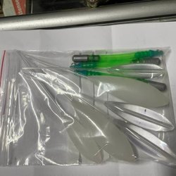 Flugask med flera flugor i olika färger och mönster.