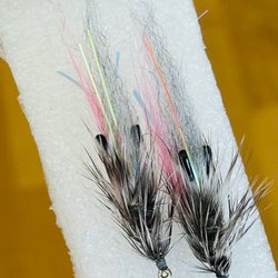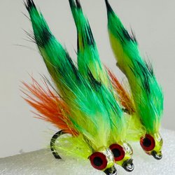 En av de mest effektiva flugor för havsöring och abborre med UV. Stora ögon som gör att flugan dippar ner fort. På en mycket vass teflon krok.