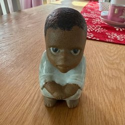 Säljer fin Lisa Larson figurin "Syd" ur serien All Världens Barn. Delvis glaserat stengods märkt Gustavsberg. Höjd 11 cm.