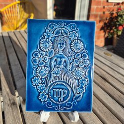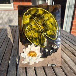 Vacker maffig keramiktavla av Västergötlands landskapsblomma Ljung, tillhör deras serie med landskapsblommor som är designad av Heinz Erret.
