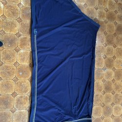 Ett par nya mörkgrå ridtights i fyrvägsstrech med hög midja och mobilficka på båda sidor. Tightsen är helskodda med silikongrepp för extra stöd i sadeln. Det finns en logotyp på sidan av benet och ett mönster på baksidan.
