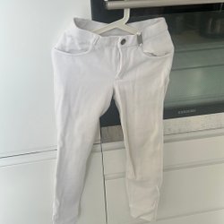 To par ridebukser. Det ene par er brune (Maddox) med fuldgrip og det andet par er lysebrune/grå (Equpage) med silikonegrip.