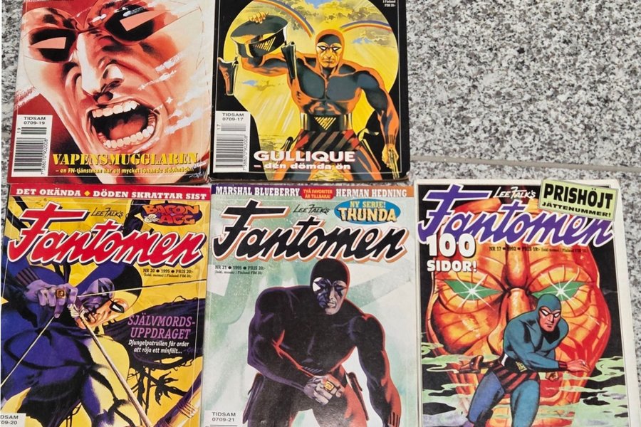 Fem stycken Serietidning ett är "Fantomen: Prishöjt Jättenummer!" från 1995. Innehåller 100 sidor. Tidningen har streckkoden 7388070901902.