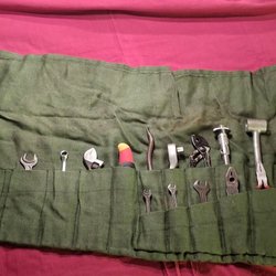 Denna verktygssats innehåller en handborr, skruvmejslar, en hammare, en gummiklubba, en rörtång, en polygrip och en skiftnyckel. Se bilder vilka verktyg som finns