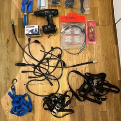 Diverse verktyg säljes. Inkluderar bland annat en låda med Molly-sträckare , bandjärnsspännare , samt gertång .