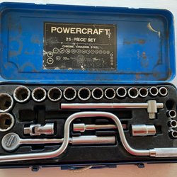 Hylsnyckelsats i grön förvaringslåda. Innehåller hylsor och tillbehör.21/22/23/24/26/27/28/29/30/31/32/34/36/38/41/46/50/55/60/65
