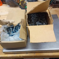 Parti med skruvar och expander. Skruvarna är av olika typer och storlekar, inklusive träskruv och universalskruv. Expander är också inkluderade.