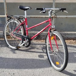 Säljer en damcykel med korg fram. Den har pakethållare bak och är vit med rosa detaljer. Har nyligen köpts och har använts max 1 gång.