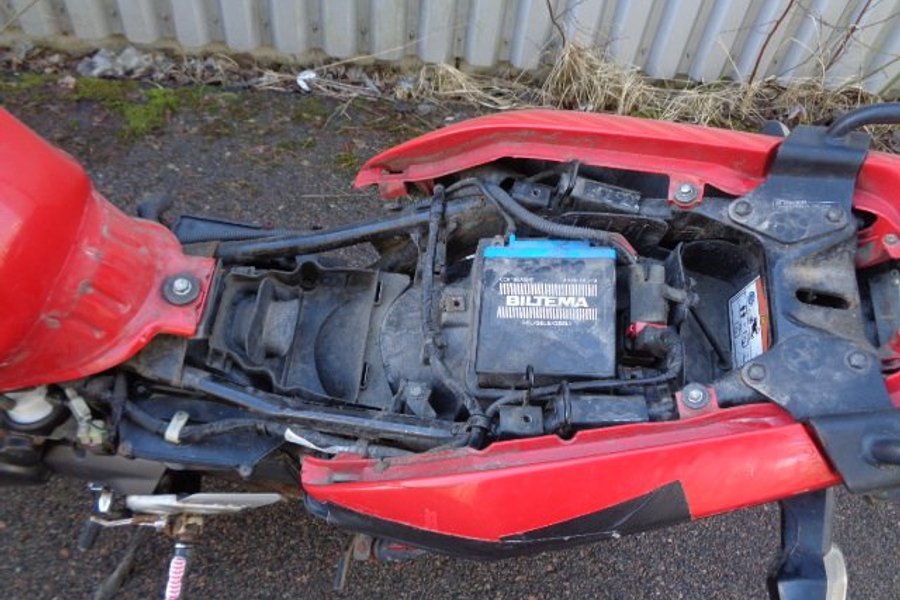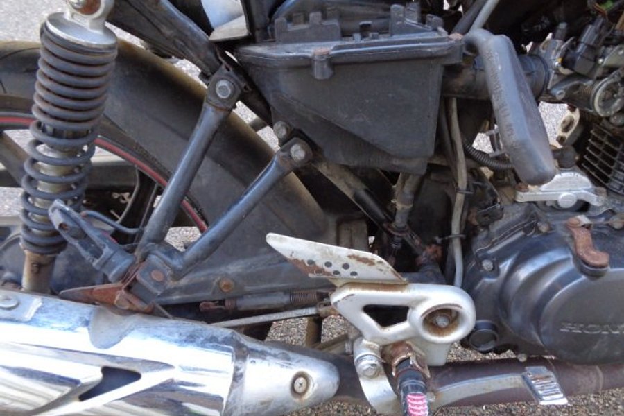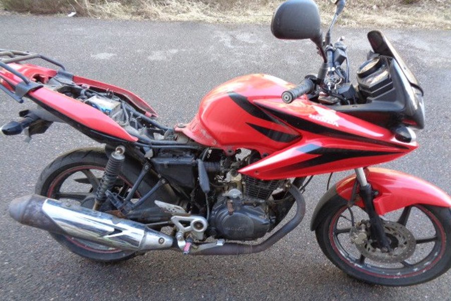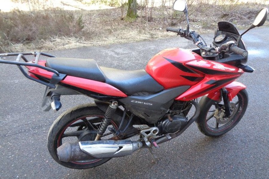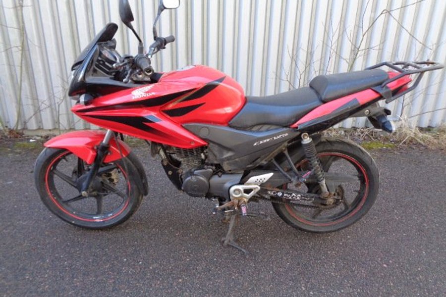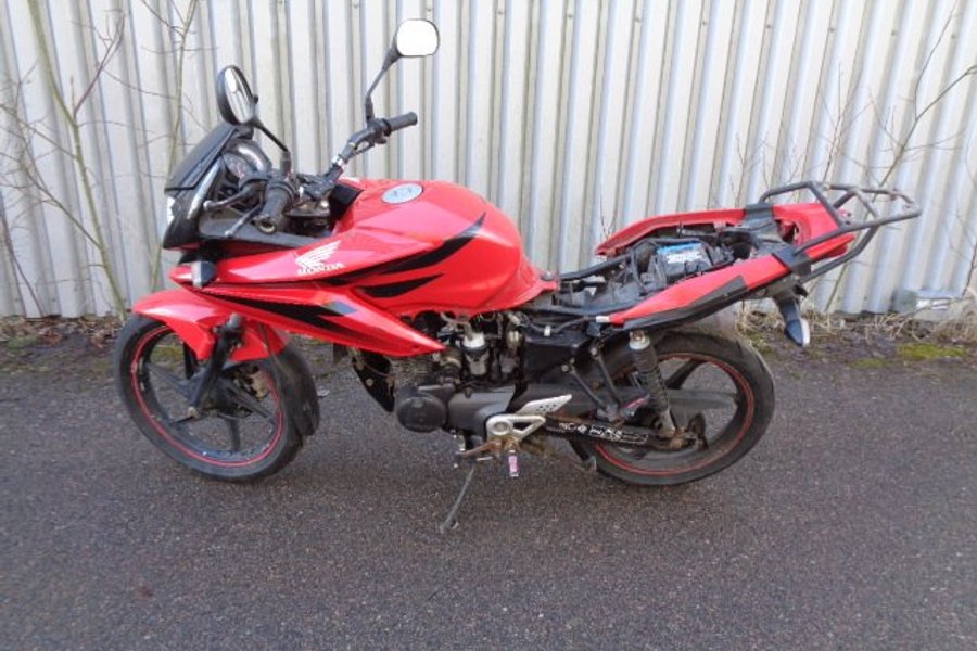 Honda CBF 125cc , gissning årsmodell 2013. Tidigare ägare har byggt/ ändrat handbroms flyttat placeringen till vänster sida se bilder för sitt handikapp, OBS saknar handbroms handtaget .motorcykel startar inte ingen gnista . insprutnings modellen., den går runt på starten, det finns lösa delar som medföljer , så de har nog försökt en del med att få igång den .kommer från ett dödsbo. Tidigare ägaren som var från Norge hade med sig över dessa till Sverige . Gjordes aldrig import eller typbesiktning . Därför säljs de utan reg papper. Säljes som reservdelar , renoverings objekt med en hel del användbara delar etc. ej funktion testad, se bilder se skicket.