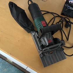 Multiverktyg från Parkside med tillbehör i trälåda. Perfekt för diverse hobbyprojekt och precisionsarbeten.