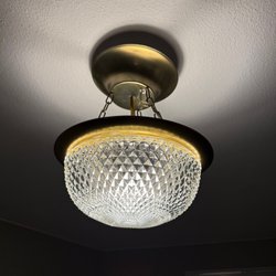 Taklampa i mässing och glas