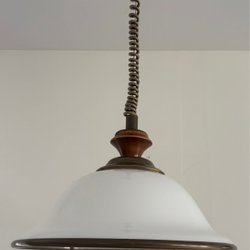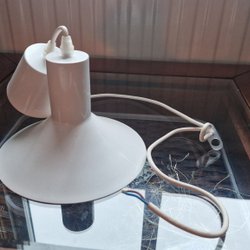 Taklampa i vit metall. Lampan har en klassisk design som passar i många olika inredningsstilar. Den är utrustad med en vit textilsladd och en takkontakt för enkel installation.