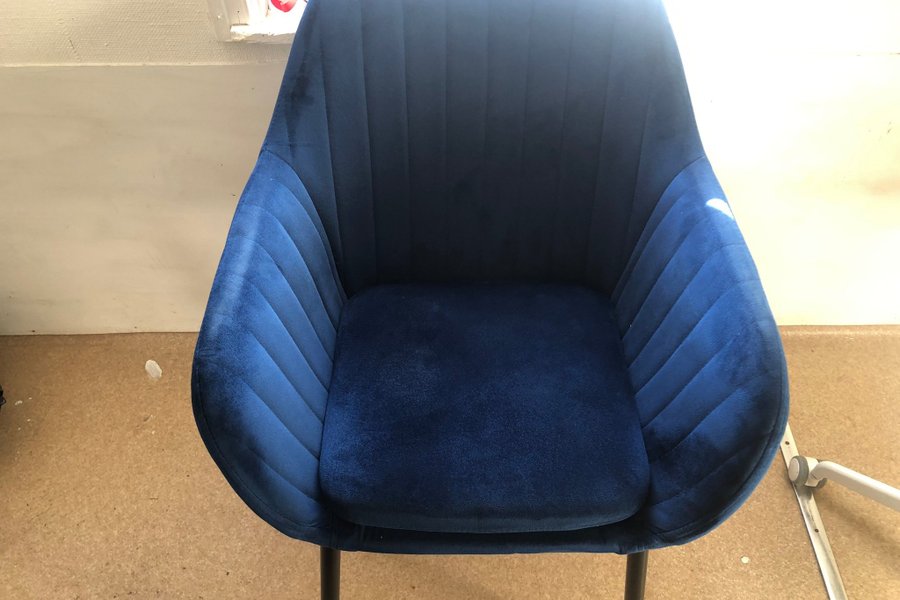 Blå sammet fåtölj