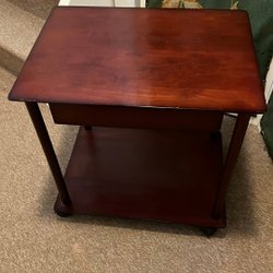 Konsolbord i massivt trä med två lådor och en hylla. Perfekt för hallen eller som avlastningsbord i vardagsrummet.