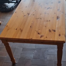 Troligen betsad och lackad björk. Svårt att fota pga den blanka ytan.