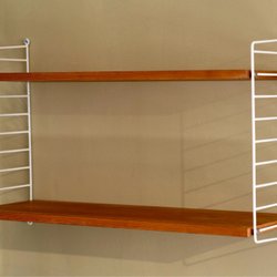 Klassisk Stringhylla med tre hyllplan. Se bilder för skick. De två svarta gavlarna är kraftiga och ser ut att tåla belastning bra.