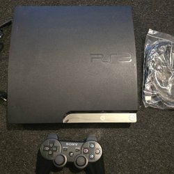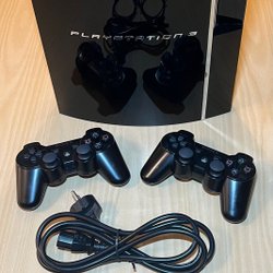 Playstation 3 med två handkontroller och laddkabel. OBS! HDMI kabel medföljer ej!