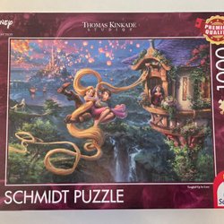 Två pussel från Schmidt med motiv av Thomas Kinkade. Det ena pusslet heter Twilight Cottage och det andra Victorian Light. Båda pusslen har 500 bitar.