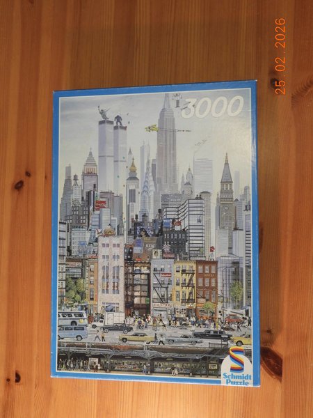 Schmidt Puzzle med 3000 bitar. Pusslet har ett motiv av en stad.