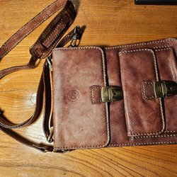 Brun axelremsväska