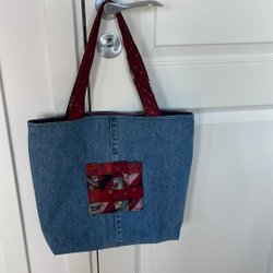 En volontär hos oss på RödaKorset Botkyka har sytt denna snygga väska av slipsar!